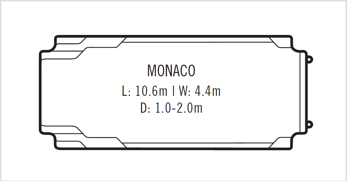 Innovative, safety ledge design featuring a wide, uninterrupted swimming length ideal for exercise and recreation. Cleverly designed incorporating plenty of areas to sit back and relax including two corner-sit outs and wide-entry steps.